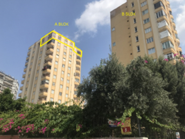 Ana gayrimenkul 3588,00 m2'lik arsa üzerinde, ayrık nizam tek kütle üzerinde betonarme karkas yapı cinsinde 3 blok(A,B,C) olarak inşa edilmiştir. A blok parselin doğusunda, bodrum+ zemin+ asma kat+12 normal katlidir. Projesine göre bodrum katta genel depo, sığınak, hidrofor, zemin katta apartman girişi, asma katta 25 bb nolu işyeri, kapıcı dairesi ve normal katlarda 2'şer mesken olmak üzere toplam 25 adet bağımsız bölüm bulunmaktadır. Bahçenin etrafı bahçe duvarla çevrili durumdadır. bahçe içinde açık otopark kamelya ve çocuk oyun alanı mevcuttur. Giriş kuzey cepheden zemin kattandır. Binada asansör vardır. Binanın dış cephesi akrilik dış cephe boyalıdır.