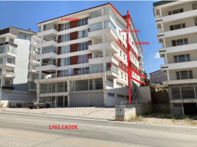 Ana gayrimenkul 1431,47m2 alanlı arsa üzerinde, ayrık nizam tarzında, betonarme yapı cinsinde 2 kademeli bodrum+ zemin+ 5 normal katlı olarak 2019 yılında inşa edilmiştir. Altındağ Belediyesinin imar arşivinde ve TKGM sisteminde mevcut onaylı mimari projesine göre A kademe zemin katında 21 ve 22 nolu dükkanlar, A kademe 1. Katında 1 ve 2 nolu meskenler, aynı kot B Kademe zemin katında sığınak, su sayaç yeri, su deposu, 14 ve 16 nolu daireler ait depolar, A Kademe 2. Katında 5 ve 6 nolu meskenler, B Kademe 1. Katında 3 ve 4 nolu meskenler, A Kademe 3. katında 9 ve 10 nolu meskenler, B kademe 2. Katında 7 ve 8 nolu meskenler, A kademe 4. katında 13 ve 14 nolu meskenler, B Kademe 3. katında 11 ve 12 nolu meskenler, A Kademe 5. katında 17 ve 18 nolu meskenler, B Kademe 4. katında 15 ve 16 nolu meskenler, B Kademe 5. katında 19 ve 20 nolu meskenler bulunmaktadır. Binanın dış cephesi mantolama üzeri dış cephe boyalıdır. Bina girişi A kademe zemin kattan doğu cepheden sağlanmaktadır. Bina giriş kapısı ve merdiven korkulukları alüminyum doğramadır. Bina giriş zemini, kat sahanlıkları ve bina içi merdivenler mermer kaplıdır. Ortak alan duvarları yarıya kadar mermer, üst kısmı boyalıdır. Binada asansör ve açık otopark mevcuttur.