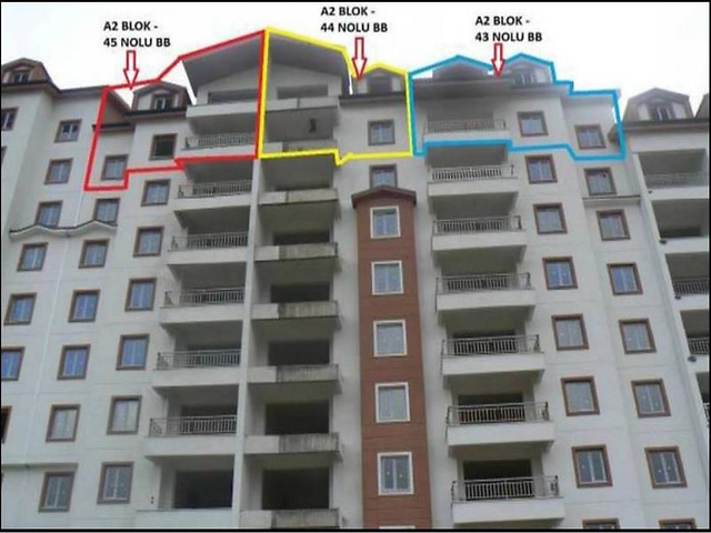 Özellikler: A2 BLOK - 45 NOLU B.BOLÜM: Ana gayrimenkulde 6. Katta konumlu 45 bağımsız bölüm nolu çatı aralı konut A2 Blok zemin kattan olan giriş kapısına göre sağ arka tarafta yer almaktadır. Mimari projesine göre brüt 100 m2 + 88 m2 olmak üzere toplam 188m2 alanlıdır. 6.normal katı brüt 100 m2 kullanım alanlı olup 1 oda, Salon, mutfak, wc-duş, antre ve 1 balkon hacimlerinden, Çatı arası katı brüt 88 m2 kullanım alanlı olup 2 oda, banyo, hol ve balkon hacimlerinden oluşmaktadır.