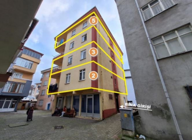 Özellikler: 223,48 m2 yüzölçümlü arsa üzerinde, ayrık nizamda inşa edilmiş, betonarme yapı cinsinde, Zemin +4 Normal Kat olarak inşa edilmiştir. Mimari projesine göre binanın, Zemin katında, bina girişi, 1 bağımsız bölüm numaralı 1 adet mesken, 1. normal katından 4. normal katına kadar her katta 1 adet mesken olmak üzere toplam 5 adet bağımsız bölüm bulunmaktadır. Binanın girişi zemin katın, kuzeybatı yönünden sağlanmaktadır. Taşınmazların bulunduğu binanın dış cephesi akrilik esaslı cephe boyasıdır. Bina giriş kapısı camlı demir kapı olup merdiven korkulukları demir doğramadır. Binanın girişi, merdivenleri ve ortak kullanım alanlarında zeminleri mermer kaplamalı, duvarları siva Üstü plastik boyalı, tavanları plastik boyalıdır.