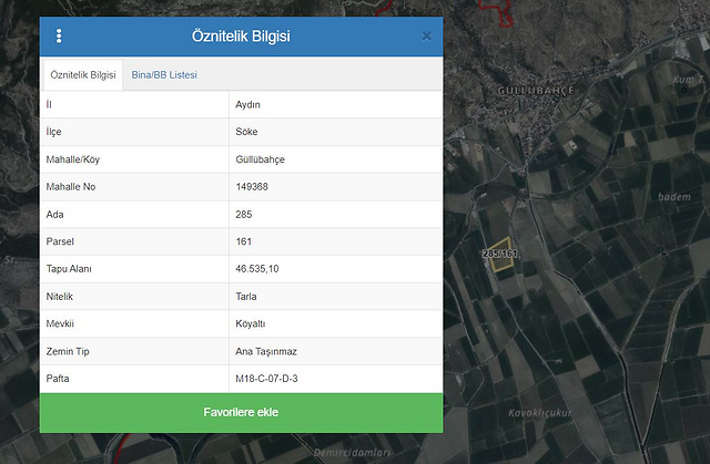Özellikler: Taşınmaz, Güllübahçe Köyü, 285 ada 161 parsel, Söke /Aydın adresinde konumludur. Gayrimenkulün bulunduğu muhit tarım amaçlı olarak kullanımın yaygın olduğu bir bölgedir. Taşınmazın çevresinde benzer nitelikte tarım alanları bulunmaktadır. Düz bir topografik yapıya sahip ve düzgün geometrik şekli bulunmaktadır. Taşınmazın etrafı fiziksel olarak sınırlandırılmamıştır. Tarla vasfında olup cins tashihi yapılmamıştır. Konu taşınmazın batısında kanal ve kanal yolu, doğusunda kadastral yol bulunmaktadır. Bölgede sulama kanallar yardımı ile sağlanmaktadır.