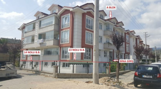 Ana taşınmaz 1096 Ada, 23 parselde kayıtlı 1664,00 m² alanlı arsa ve üzerinde, ayrık nizamda, betonarme karkas yapı tarzında inşa edilmiş iki adet bloktan oluşmaktadır. Taşınmazların konumlu olduğu A Blok parselin güneydoğusunda konumludur. Kat irtifakına esas mimari projesi ve mahallinde, taşınmazın konumu vaziyet planına göre uygundur. Bina 4 katlı (bodrum + zemin + 2 normal kat) inşa edilmiştir. Binanın bodrum katında, enerji odası ve 13,14,15,16 b.b. numaralı özel amaçlı depolar, zemin katında ve normal katlarında 4'er adet mesken olmak üzere, binada toplam 16 adet bağımsız bölüm bulunmaktadır. Binaya giriş kuzeydoğu cephesinden, zemin kat seviyesinden, 1A dış kapı numarası ile sağlanmaktadır. Bina dış cephesi akrilik dış cephe boyası ile boyalı olup, giriş kapısı demir doğramadır. Bina giriş holü, kat sahanlıkları ve merdiven zeminleri mermer kaplı olup, duvarları plastik boyalıdır. Binada asansör bulunmamakta olup, doğalgaz tesisatı bağımsız bölüm girişlerine kadar döşelidir.
