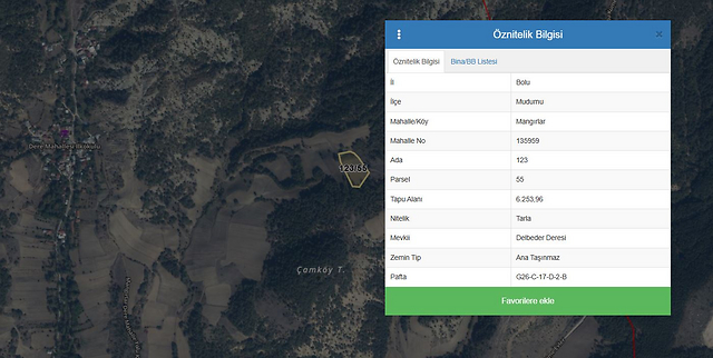 Özellikler: Bolu İli, Mudurnu İlçesi, Mangırlar Köyü, Delbeder Deresi Mevkii adresinde kain, tapuda Mudurnu İlçesi, Mangırlar Köyü, Delbeder Deresi Mevkii, 123 Ada 55 Parsel, 6.253,96 m² yüzölçümlü tarla vasıflı taşınmazdır. Amorf bir geometrik şekle sahiptir. Parsel az eğimli bir topografyadadır. Parsel sınırları yerinde işaretlenmemiş durumda olup, parsel kadastro yoluna cepheli değildir.