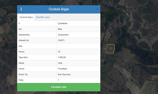 Özellikler: Taşınmaz; Çanakkale ili, Biga ilçesi, Gürgendere mahallesin de konumlu 1 adet 'Tarla' vasfında taşınmazdır.