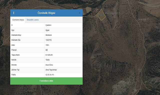 133 Ada 88 parsel; Çankırı ili Ilgaz ilçesi Belören köyü Evciönü mevkisi 133 ada 88 parsel 8129,29 m² alana sahip tarla vasıflı taşınmazdır. Taşınmazın kadastro yoluna cephesi bulunmaktadır. Taşınmaz amorf şekilde ve az eğimli bir topoğrafyaya sahiptir. Taşınmazın sulama imkanı bulunmamaktadır. Taşınmaz hali hazırda bir kısmı üzerinde küçükbaş hayvan ağılı bulunmakta olup tarımsal faaliyet gözlenmemiştir. Taşınmazın sulama imkanı bulunmamaktadır. Köy merkezine kısmen yakın noktadadır. Taşınmaz 1/12'si hisseli olup hisseye düşen 677,44 m2'dir.