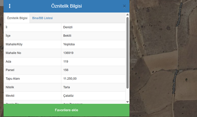 Özellikler : Taşınmaz; Denizli ili, Bekilli ilçesi, Yeşiloba - Çatalgöz mahallesi, mevkiinde konumlu 'Tarla - Bağ Bahçe' vasfında taşınmazdır. Toplam yüzölçümleri 11.250,00 m2'dir.