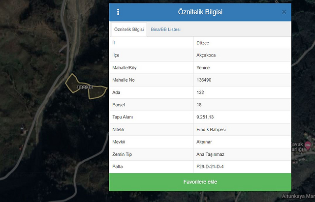 Özellikler: Düzce Akçakoca Yenice mahallesinde 132 ada 18 parsel konumlanmaktadır.