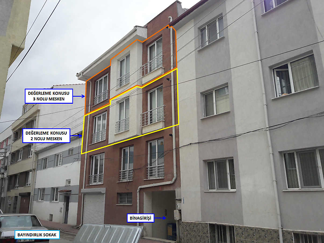 Özellikler: 3 bağımsız bölüm numaralı mesken, ikinci normal katta sadece kendisi konumlu olup Bayındırlık Sokak cephelidir. Mimari projesine göre; 3 oda, salon, mutfak, antre, banyo, WC ve 1 balkon hacimlerinden oluşmakta olup 101 m2 kullanım alanlıdır.