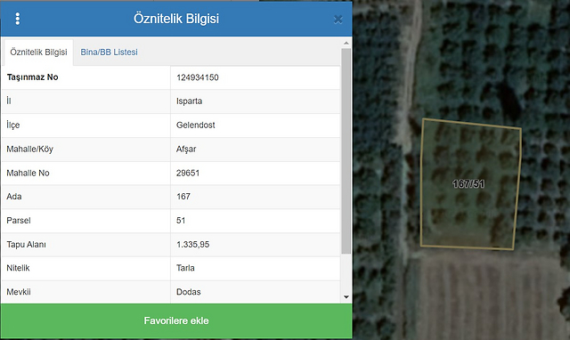 167 ada 51 parsel 1.335,95 m2 yüzölçümlüdür.