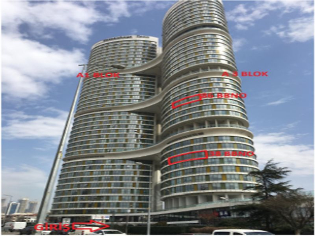 Ana taşınmaz ayrık nizam yapı tarzında A, A1, A2, A3 olmak üzere 4 bloktan oluşmakta olup sosyal alanlar, açık yüzme havuzu, güvenlik, açık ve kapalı otopark bulunmaktadır. Taşınmazın bulunduğu A3 blok 6 bodrum+zemin+41 normal kattan oluşmaktadır. Projesine göre 6, 5, 4, 3, 2. bodrum katlarda otopark ve ortak alanlar, 1. bodrum katta otopark ve sosyal alanlar, zemin katta ortak alanlar ve bina girişi, normal katlarda her katta çeşitli sayılarda daireler olmak üzere toplam 238 bağımsız bölüm bulunmaktadır.