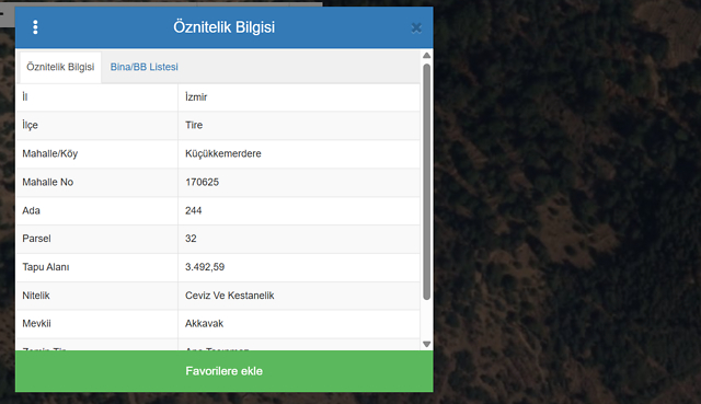 Özellikler : Taşınmaz; İzmir ili, Tire ilçesi, Küçükkemerdere mahallesi, mevkinde konumlu 'Ceviz ve Kestanelik' vasfında taşınmazdır. Toplam yüzölçümleri 3.492,59 m2'dir.