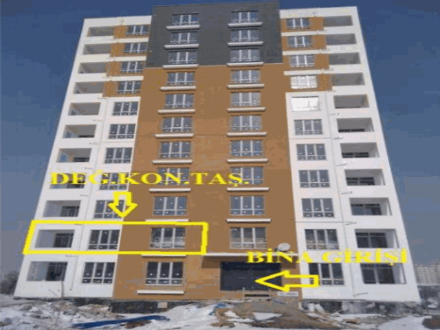 Özellikler: Bina girişi kuzeybatı cepheden sağlanmakta olup taşınmaz girişe göre sol tarafta yer almaktadır. Kuzeybatı, kuzeydoğu ve güneydoğu olmak üzere üç cephelidir. Taşınmaz binanın 1. katında 2 bb numaralı 3+1 107 m2 dairedir. Natamam yapıdadır. Duvar boyaları, oda zemin döşemeleri, ıslak hacim tavanı, vitrifiye ve armatürler, kalorifer tesisatı boru montajı ve dolaplar henüz tamamlanmamıştır.