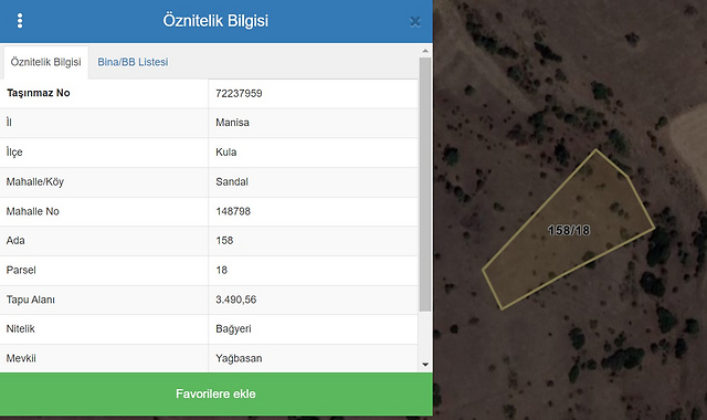 158 ada 18 parsel 3.490 m2 yüzölçümlüdür.