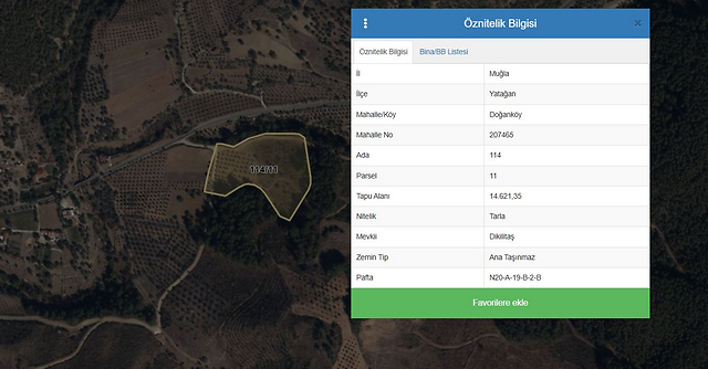 Özellikler: Muğla İli, Yatağan İlçesi, Doğanköy Mahallesi, Dikilitaş Mevkii, 114 ada 11 parselde konumludur.