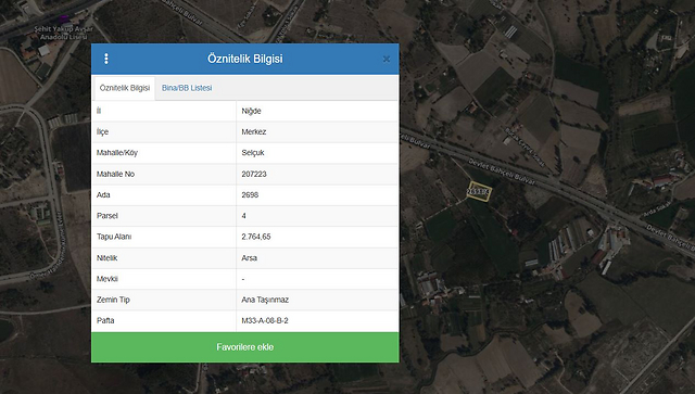Özellikler: Taşınmaz Niğde Merkez Selçuk mahallesi 2698 ada 4 nolu taşınmazın ARSA nitelikli olup, 2764,65 m² yüzölçümlüdür. Taşınmaz eğimsiz topografik yapıya sahip olup geometrik olarak dikdörtgen biçimdedir. Mahallinde parsel sınırları belirli değildir. Taşınmaz güneyinde ve doğusunda bulunan imar yolarına cepheli olup mahallinde henüz açılmamıştır.