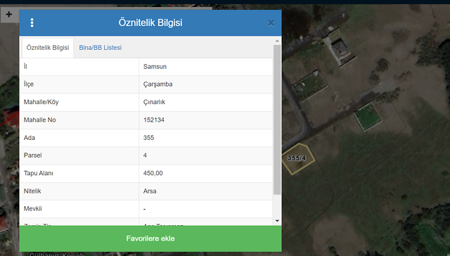 Özellikler : Taşınmaz; Samsun ili, Çarşamba ilçesi, Çınarcık mahallesi, mevkiinde konumlu 'Arsa' vasfında taşınmazdır. Toplam yüzölçümleri 450,00 m2'dir. Parsel şekilleri düzgün yapıdadır.
