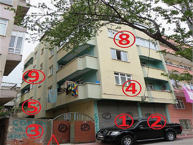 Özellikler : Yer aldığı ana gayrimenkul 199,61 m2 yüzölçümlü arsa üzerinde bitişik nizamda betonarme karkas yapı tarzında bodrum kat, zemin kat ve 4 normal kat olmak üzere toplam 6 kat olarak inşa edilmiştir. Bodrum katta sığınak ve odunluklar, zemin katta 2 adet dükkan ve 1 adet mesken, 4 normal katın her birinde 2`şer adet mesken olmak üzere toplam 11 adet bağımsız bölümden oluşmaktadır. Bina girişi zemin kattan ve binaya Eynur Sokak üzerinden bakıldığında bina sol cephesinden sağlanmaktadır. Bina dış cephesi boyalı olup bina giriş kapısı demir doğrama camlı kapıdır. Binada 1 adet asansör bulunmaktadır.