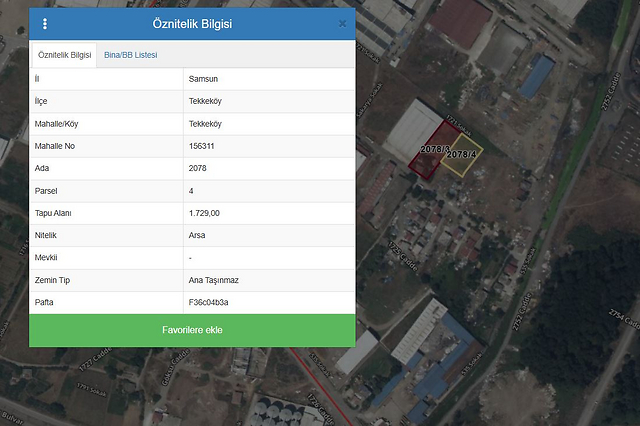 2078 ada 4 parsel numaralı taşınmaz 1.729,00 m2 yüz ölçümlü arsa nitelikli taşınmazdır. Üzerinde herhangi bir yapı bulunmamaktadır. Topografik olarak düz bölgede konumlu arsa dikdörtgen formundadır. Etrafı çevrili değildir. Cadde cepheli olup ara parseldir. Kuzeydoğu yönünden yaklaşık 37 metre 1721.sokağa, güneydoğu yönünden yaklaşık 49 metre 6 ve 7 numaralı parsellere, güneybatı yönünden yaklaşık 36 metre 5 parsele, kuzeybatı yönünden yaklaşık 48 metre 3 parsele cephelidir. .