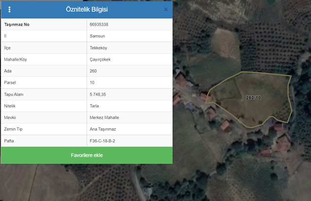 Özellikler: 260 ada 10 parselde yer alan taşınmaz 5748,35 m2 alanlı olup tarla vasıflıdır.