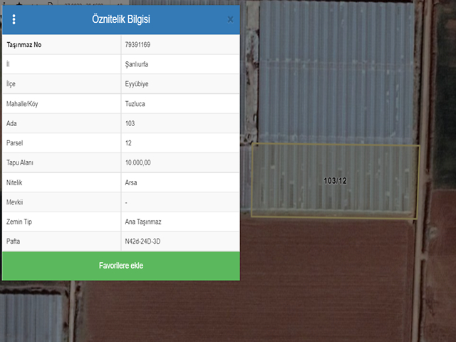 Not: Tuzluca köyü mevzi imar planına göre; E: 0.05, h:12.50 m, yapılaşma koşullarıyla Sera alanında kaldığı bilgisi alınmıştır. Sera için 26.10.2015 tarihli yapı ruhsatları ve 24.11.2015 tarihli yapı kullanma izin belgeleri mevcuttur. Sera sökülür takılır bir yapı olduğu için, mevcut halinde yerinde olmayabilir. Teklif vermeden önce güncel imar durumunu ve yapılaşma şartlarını, teyit ediniz. Alıcı mevcut haliyle almayı kabul eder.