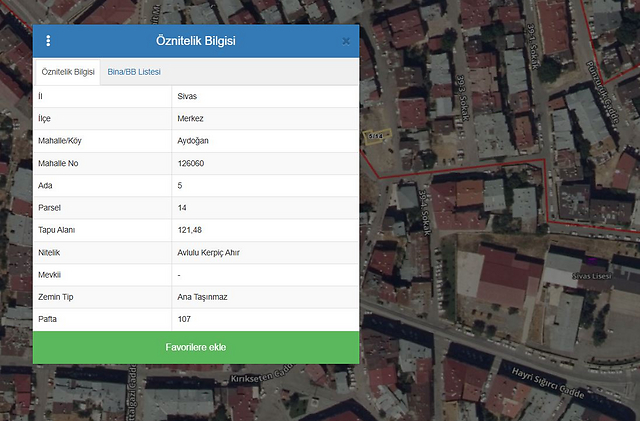 Özellikler: Aydoğan Mahallesi, 39-5. Sokak, Merkez / Sivas adresinde konumludur. 5 ADA 14 PARSEL nolu taşınmaz AVLULU KERPİÇ AHIR vasıflı olup, 121,48 m2 alanlıdır. Geometrik olarak amorf formdadır. Topografik olarak az eğimli bir arazi yapısına sahiptir. Şehir merkezine yaklaşık 850 m mesafede yer almaktadır. Mahallinde yapılan incelemede parsel üzerinde bulunan geçici yapının yıkıldığı tespit edilmiştir.
