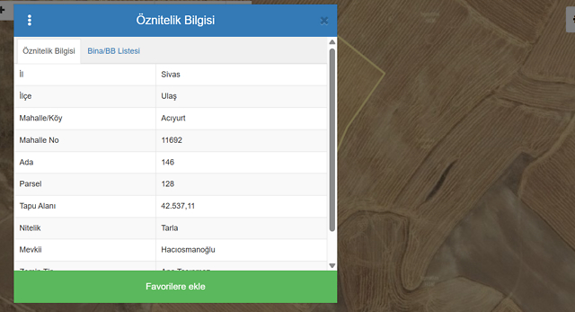 Özellikler : Taşınmaz; Sivas ili, Ulaş ilçesi, Acıyurt mahallesi, 146 ada 128 parsel konumlu 'Tarla' vasfında taşınmazdır. Toplam yüzölçümleri 42.537,11 m2'dir.