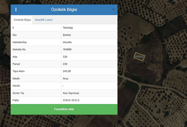 Özellikler: Tekirdağ İli, Şarköy İlçesi, Mürefte Mahallesi, 330 ada 239 parsel üzerinde konumlu ARSA vasıflı taşınmazdır.