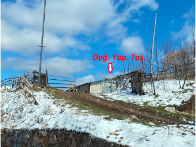 Özellikler: 104 ada 422 parsel 5435,05 m2 yüzölçümüne sahip olup. "Ahır ve Tarlası" vasfındadır. Parsel geometrik olarak amorf formda, eğimli bir topografik yapıya sahiptir. Kuzeybatı cephesinden imar yoluna 130 m cepheli olup. parsel derinliği 45 m dir. Parsel üzerinde kadastro paftasında işli vaziyette ahır binası bulunmaktadır. Parsele ait mimari proje ahir, bakıcı evi, yem deposu ve gübre çukuru için hazırlanmış olup, mahallinde sadece ahının inşa edildiği gözlemlenmiştir. Parsel üzerinde ruhsatlı olarak inşa edilmiş ahir binası, 13,95 x 49,50 m ebatlarında olup, 690m2 alanlıdır. Mimari projede ahir ile irtibatlı 190 m2 alanlı açık gezinti alanları bulunmaktadır. Parsel üzerindeki yapı kadastral paftaya işli vaziyettedir. Ahir binası Çelik tapi sisteminde inşa edilmiş olup, duvarları briket ile örülmüştür. Kaplama yapılamamıştır .Projesindeki yapılardan sadece ahırın bulunduğu ve bu yapının projeye uygun inşa edildiği bilinmektedir.